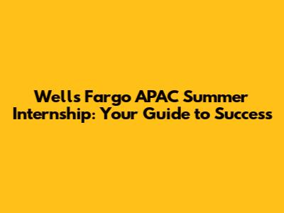 Wells Fargo APAC Internship: Your Guide To Success