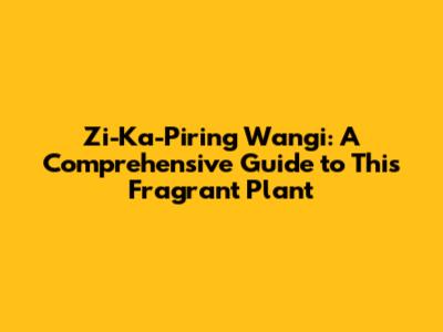 Zi-Ka-Piring Wangi: A Comprehensive Guide To This Fragrant Plant
